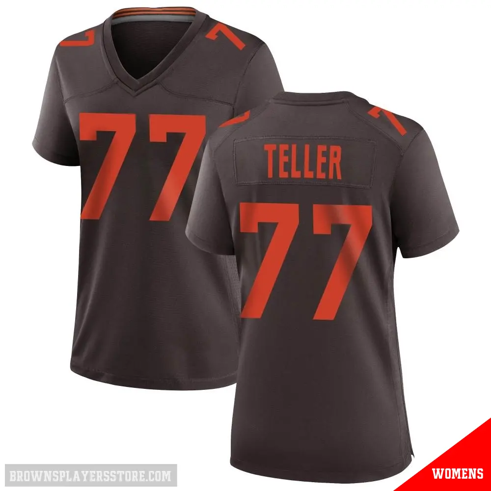 >Wyatt Teller Jersey>#77 Women's Wyatt Teller Brown Game Cleveland Browns Alternate Jersey