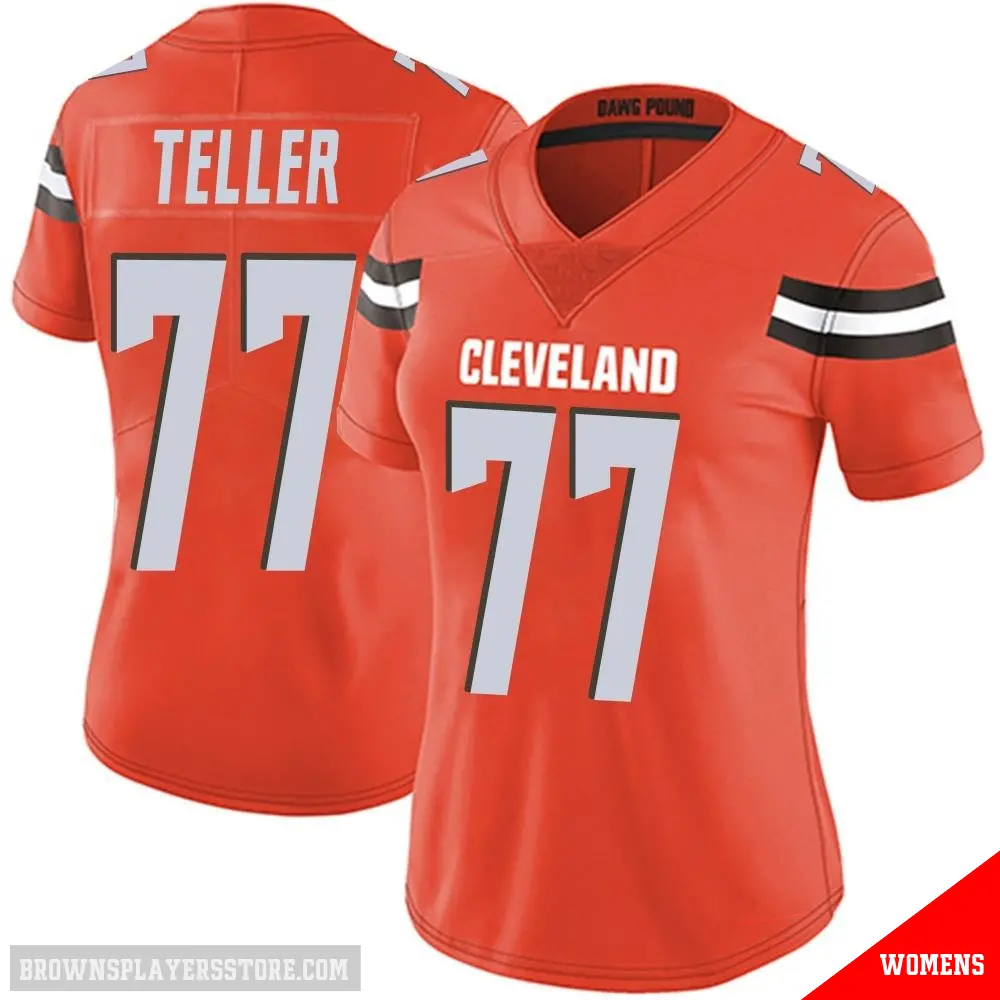 Display your Browns spirit year-round with this #77 Women's Wyatt Teller Orange Limited Cleveland Browns Alternate Vapor Untouchable Jersey. Whether you're in the crowd or lounging at home, it's the ideal way to showcase your love for Browns.