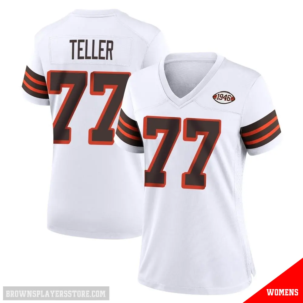 #77 Women's Wyatt Teller White Game Cleveland Browns 1946 Collection Alternate Jersey