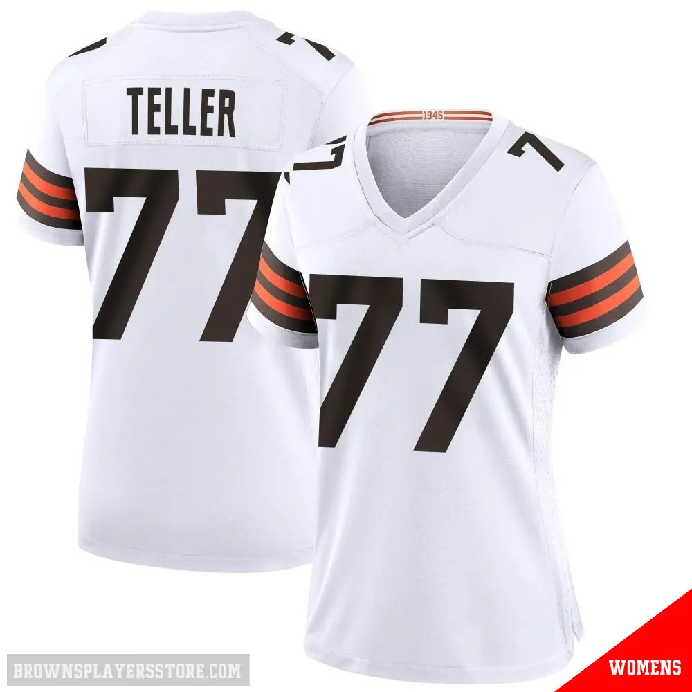 >Wyatt Teller Jersey>#77 Women's Wyatt Teller White Game Cleveland Browns Jersey
