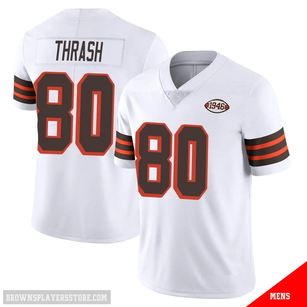 Display your Browns spirit year-round with this #80 Men's Jamari Thrash White Limited Cleveland Browns Vapor 1946 Collection Alternate Jersey. Whether you're in the crowd or lounging at home, it's the ideal way to showcase your love for Browns.