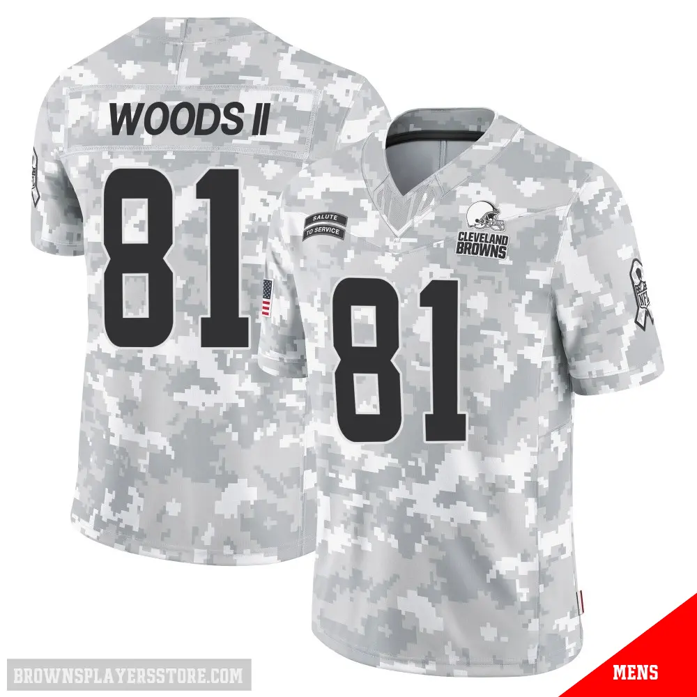 Display your Browns spirit year-round with this #81 Men's Michael Woods II Arctic Camo Limited Cleveland Browns 2024 Salute to Service Jersey. Whether you're in the crowd or lounging at home, it's the ideal way to showcase your love for Browns.