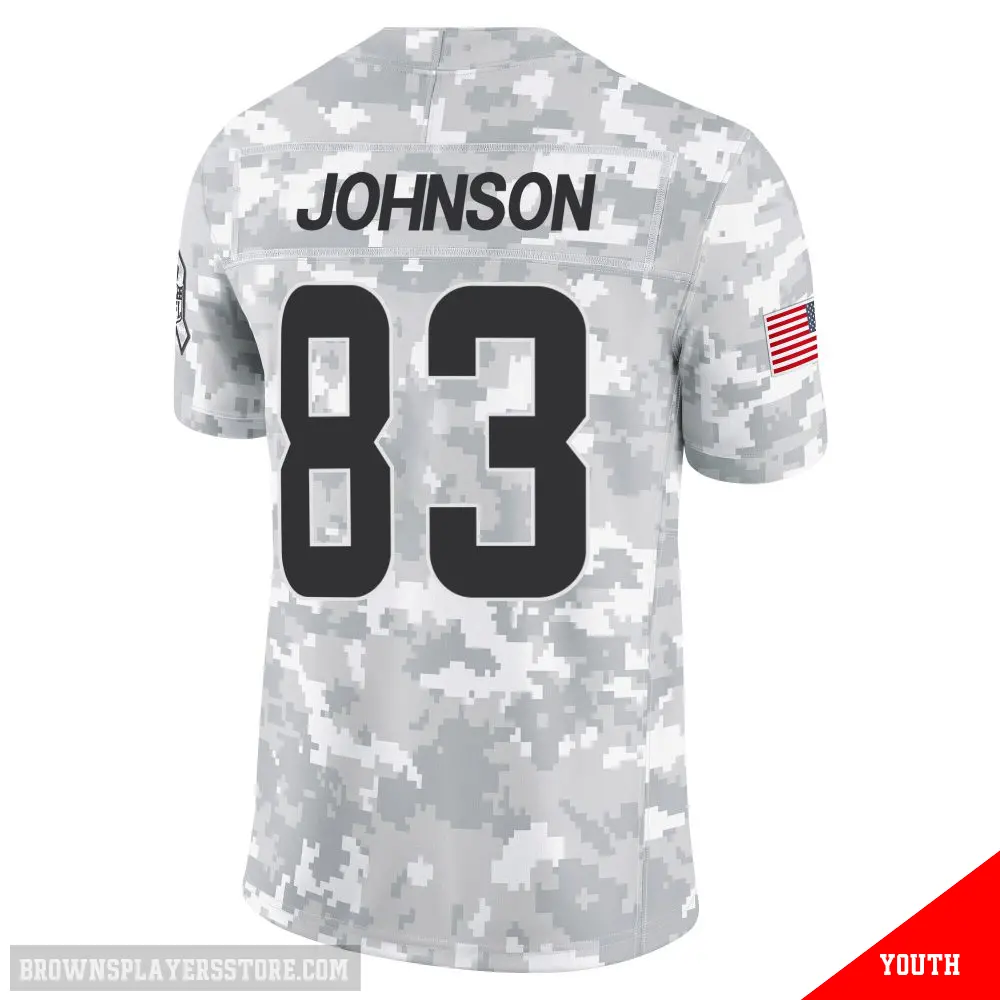 Display your Browns spirit year-round with this #83 Youth Kisean Johnson Arctic Camo Limited Cleveland Browns 2024 Salute to Service Jersey. Whether you're in the crowd or lounging at home, it's the ideal way to showcase your love for Browns.