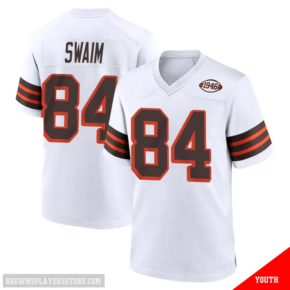 >Geoff Swaim Jersey>#84 Youth Geoff Swaim White Game Cleveland Browns 1946 Collection Alternate Jersey