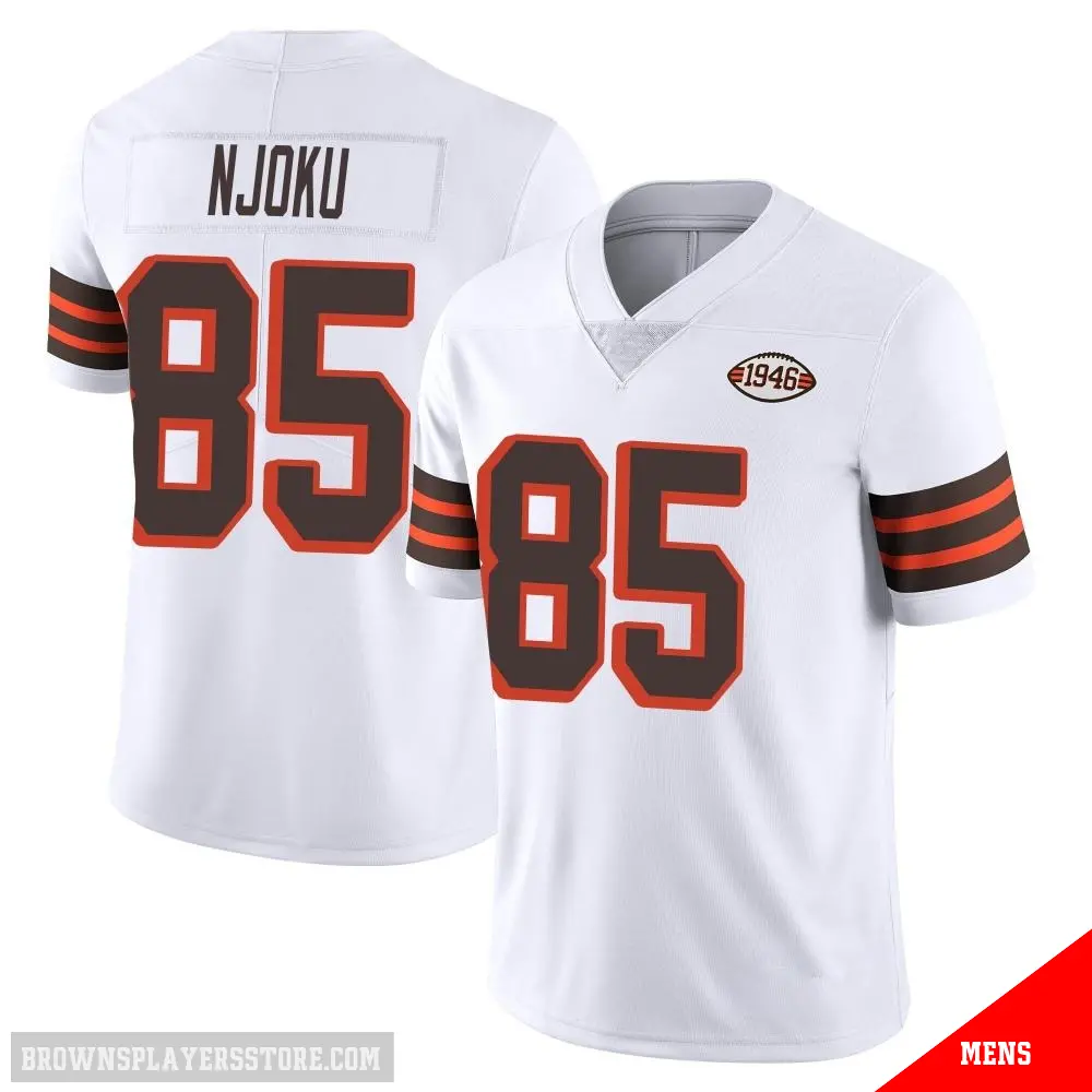 Display your Browns spirit year-round with this #85 Men's David Njoku White Limited Cleveland Browns Vapor 1946 Collection Alternate Jersey. Whether you're in the crowd or lounging at home, it's the ideal way to showcase your love for Browns.