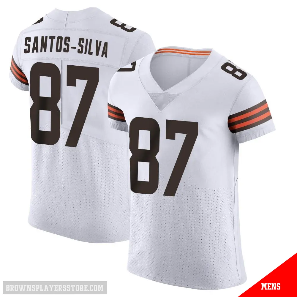 Display your Browns spirit year-round with this #87 Men's Marcus Santos-Silva White Elite Cleveland Browns Vapor Jersey. Whether you're in the crowd or lounging at home, it's the ideal way to showcase your love for Browns.