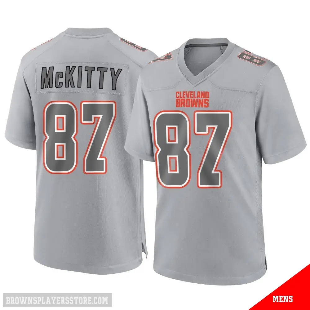 >Tre' McKitty Jersey>#87 Men's Tre' McKitty Gray Game Cleveland Browns Atmosphere Fashion Jersey