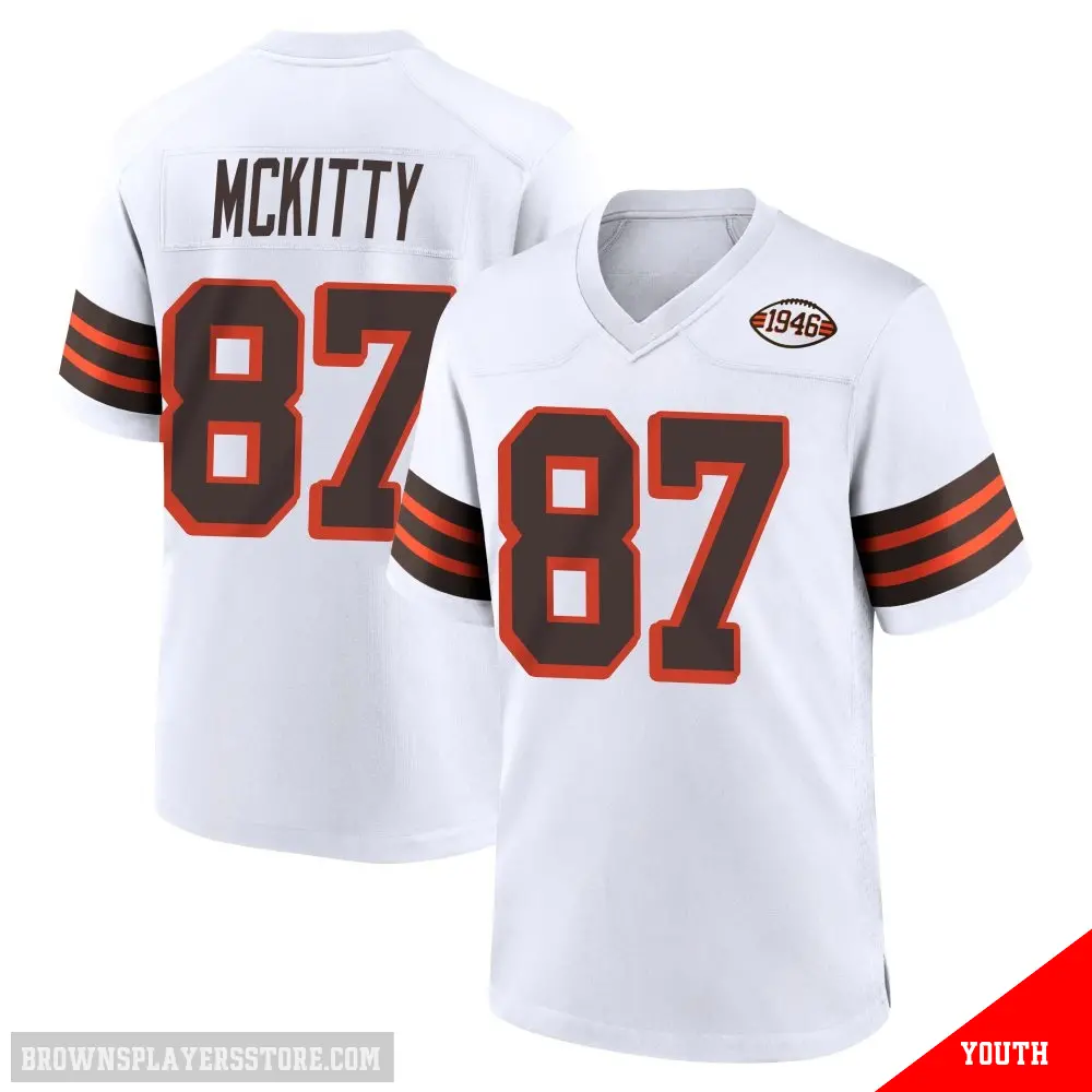 >Tre' McKitty Jersey>#87 Youth Tre' McKitty White Game Cleveland Browns 1946 Collection Alternate Jersey