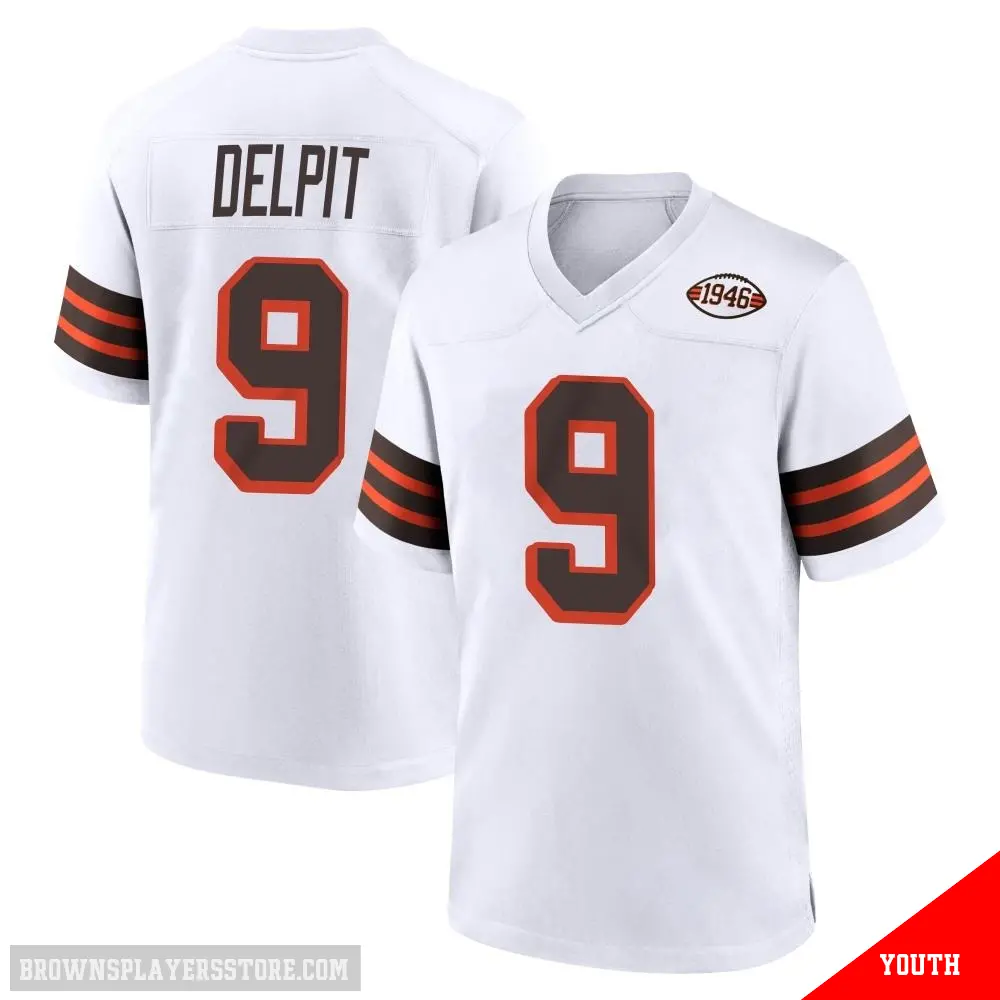 Display your Browns spirit year-round with this #9 Youth Grant Delpit White Game Cleveland Browns 1946 Collection Alternate Jersey. Whether you're in the crowd or lounging at home, it's the ideal way to showcase your love for Browns.
