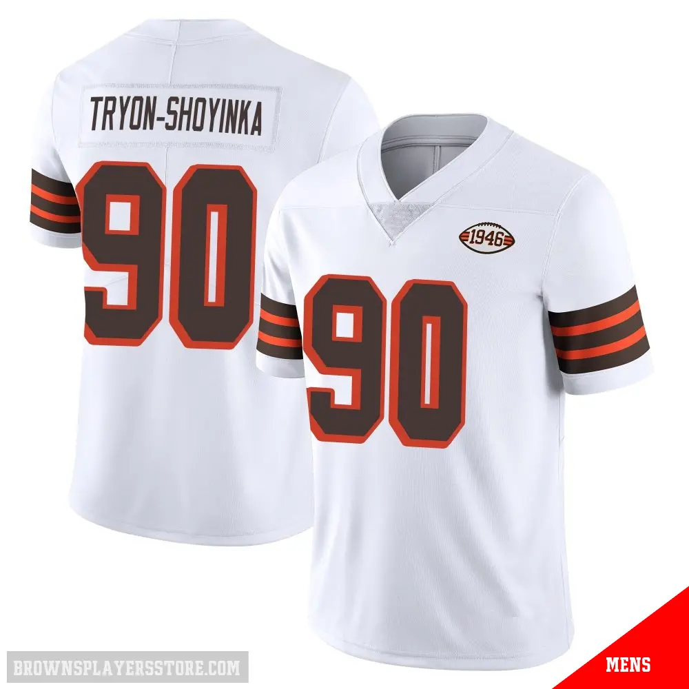 Display your Browns spirit year-round with this #90 Men's Joe Tryon-Shoyinka White Limited Cleveland Browns Vapor 1946 Collection Alternate Jersey. Whether you're in the crowd or lounging at home, it's the ideal way to showcase your love for Browns.