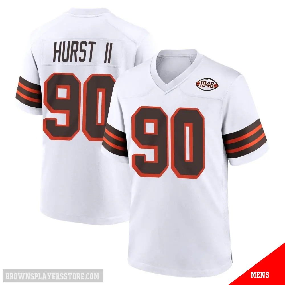 Display your Browns spirit year-round with this #90 Men's Maurice Hurst II White Game Cleveland Browns 1946 Collection Alternate Jersey. Whether you're in the crowd or lounging at home, it's the ideal way to showcase your love for Browns.