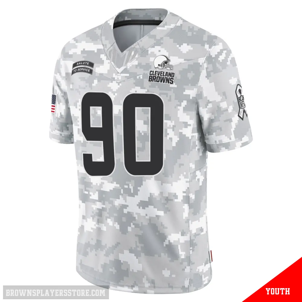 #90 Youth KJ Henry Arctic Camo Limited Cleveland Browns 2024 Salute to Service Jersey