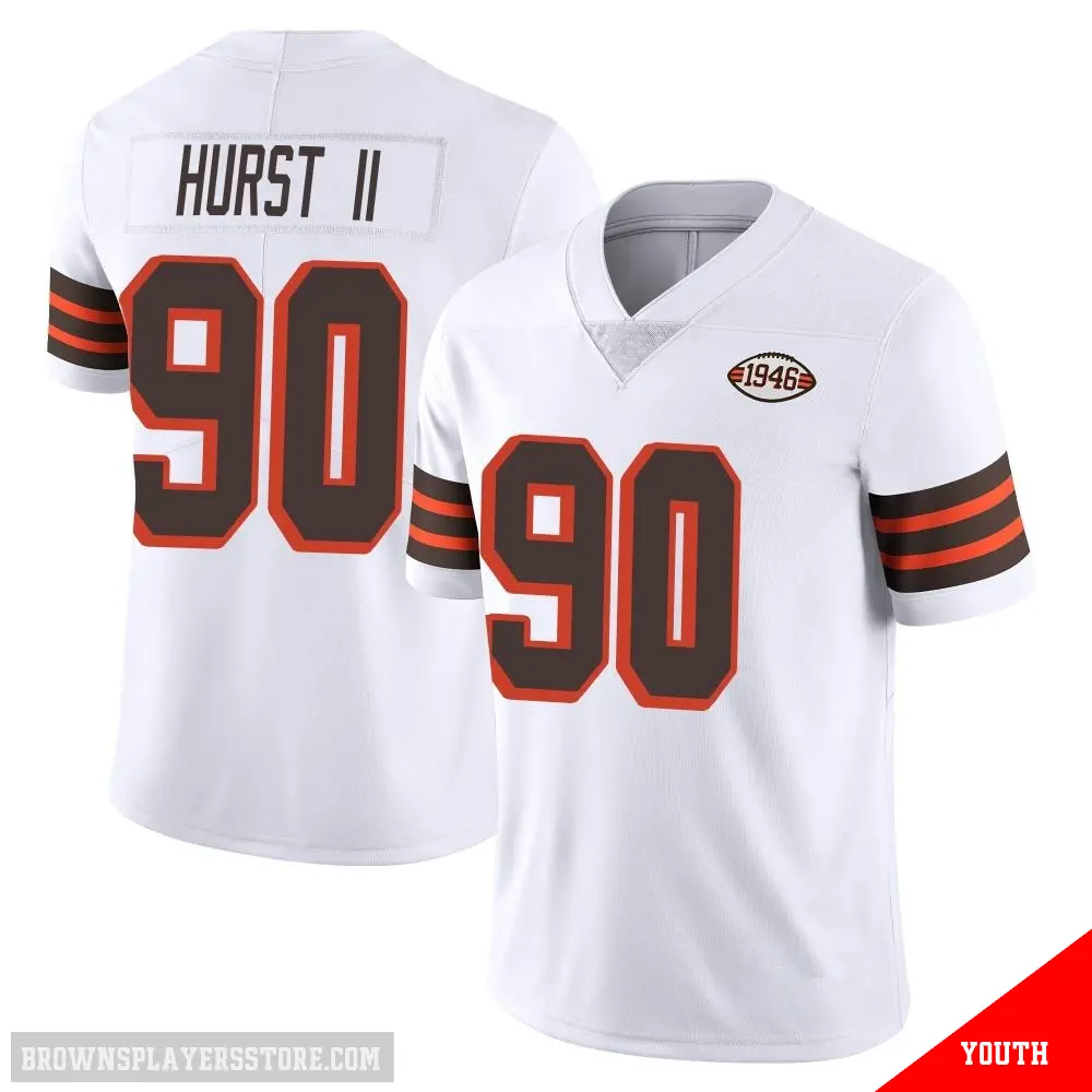 Display your Browns spirit year-round with this #90 Youth Maurice Hurst II White Limited Cleveland Browns Vapor 1946 Collection Alternate Jersey. Whether you're in the crowd or lounging at home, it's the ideal way to showcase your love for Browns.