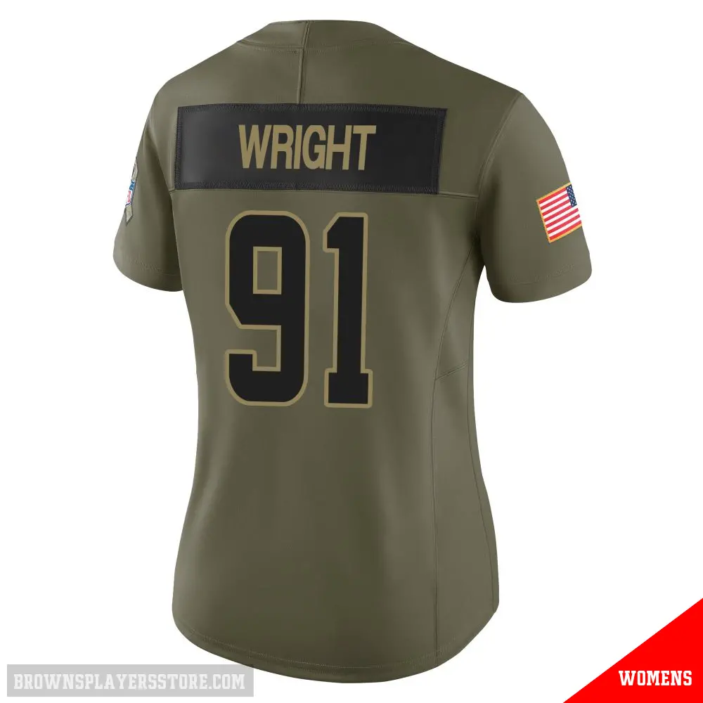 #91 Women's Alex Wright Olive Limited Cleveland Browns 2025 Salute to Service Jersey