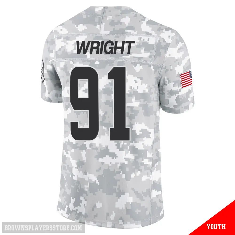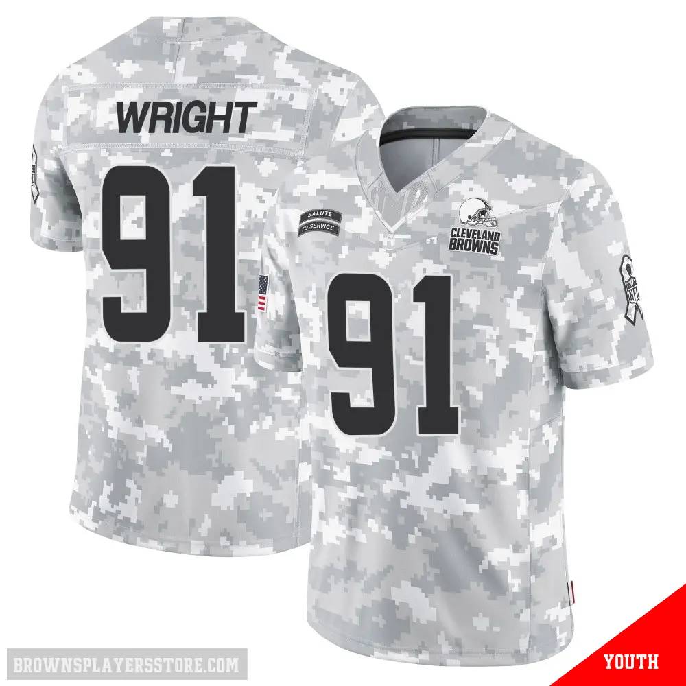 Display your Browns spirit year-round with this #91 Youth Alex Wright Arctic Camo Limited Cleveland Browns 2024 Salute to Service Jersey. Whether you're in the crowd or lounging at home, it's the ideal way to showcase your love for Browns.