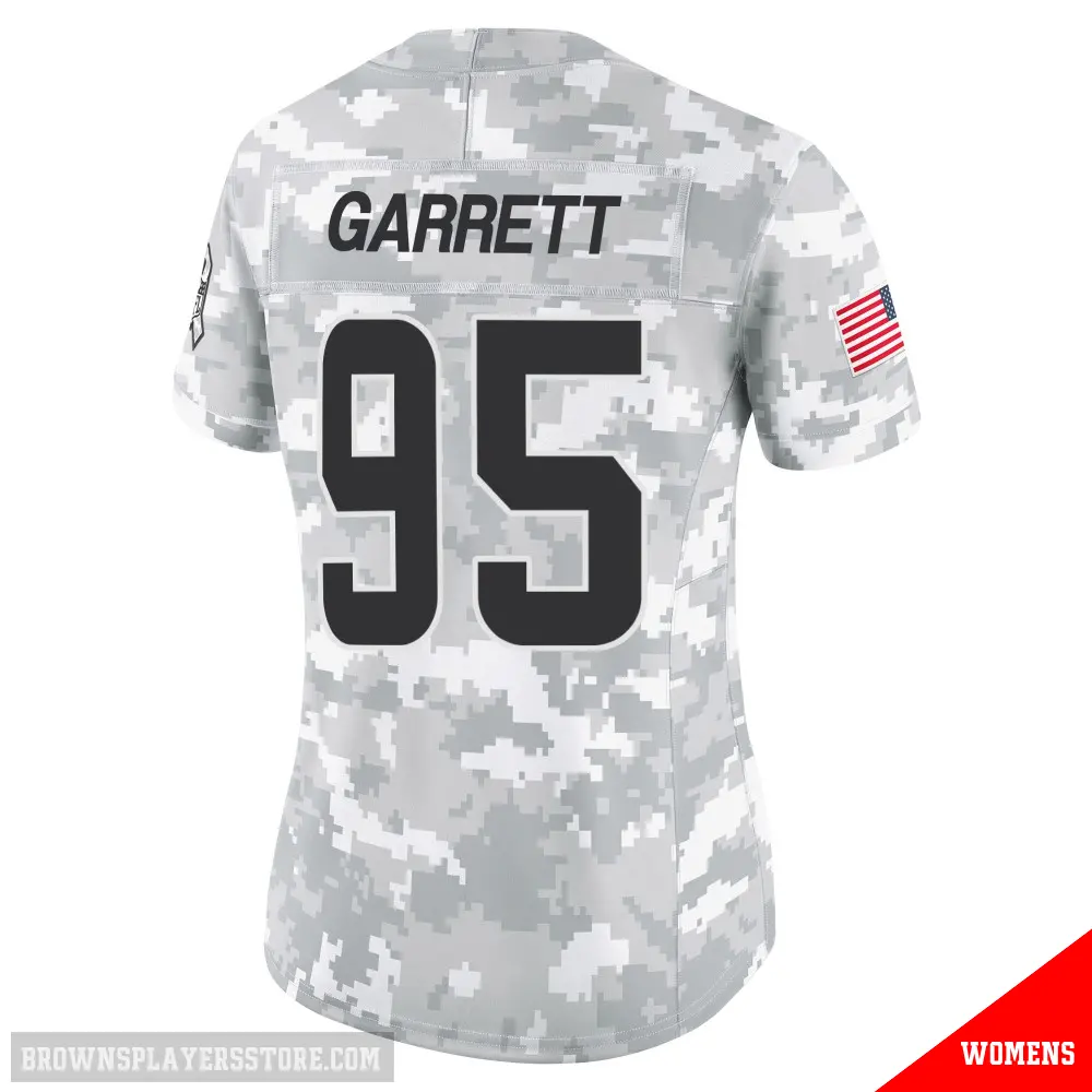 Display your Browns spirit year-round with this #95 Women's Myles Garrett Arctic Camo Limited Cleveland Browns 2024 Salute to Service Jersey. Whether you're in the crowd or lounging at home, it's the ideal way to showcase your love for Browns.