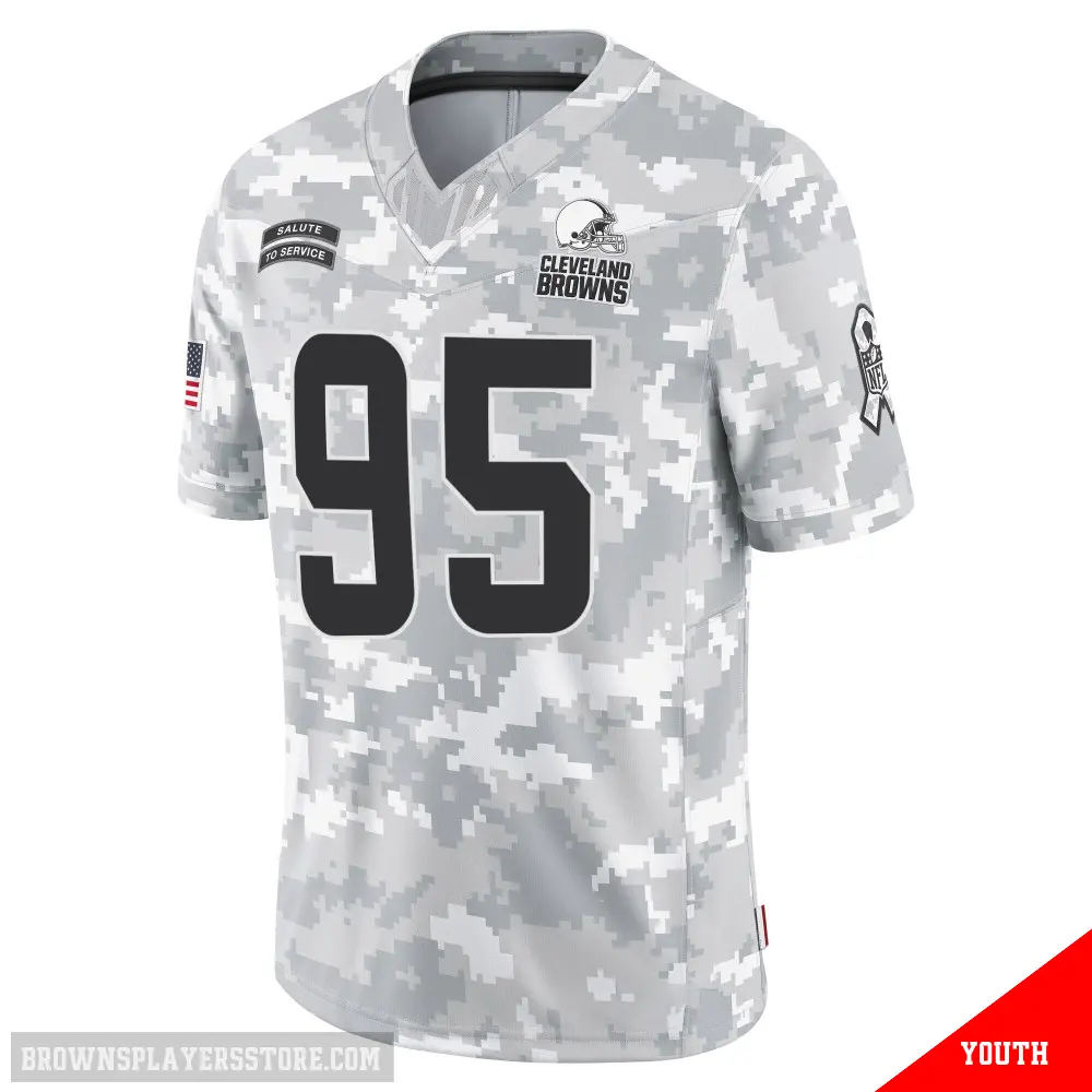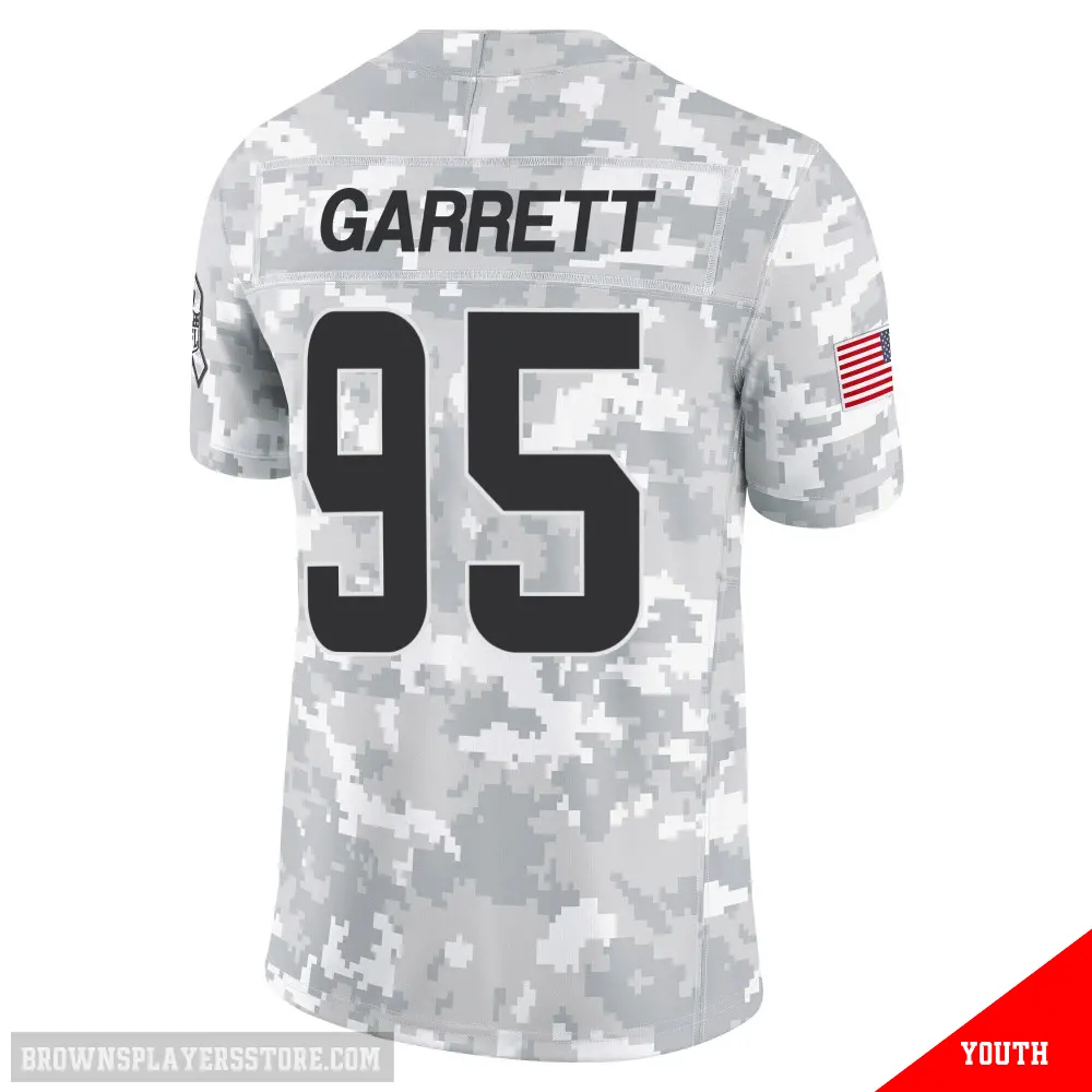 Display your Browns spirit year-round with this #95 Youth Myles Garrett Arctic Camo Limited Cleveland Browns 2024 Salute to Service Jersey. Whether you're in the crowd or lounging at home, it's the ideal way to showcase your love for Browns.