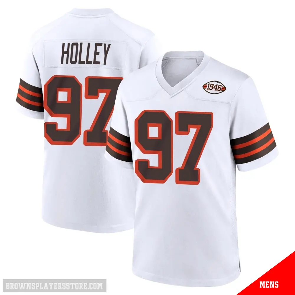 >Ralph Holley Jersey>#97 Men's Ralph Holley White Game Cleveland Browns 1946 Collection Alternate Jersey