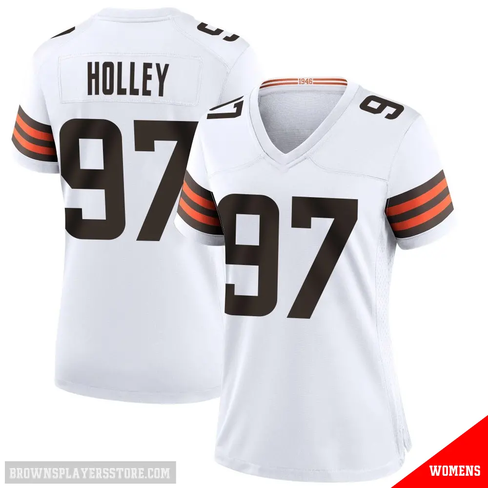 #97 Women's Ralph Holley White Game Cleveland Browns Jersey