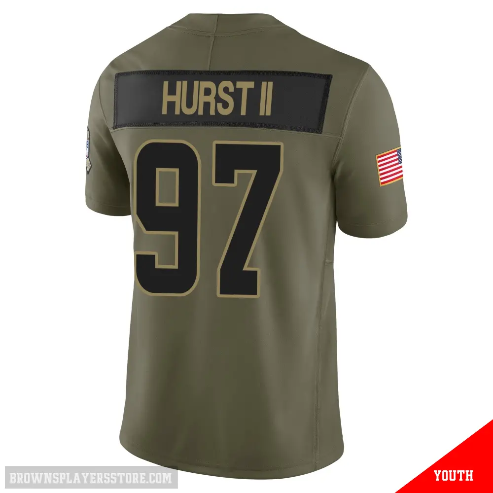 Display your Browns spirit year-round with this #97 Youth Maurice Hurst II Olive Limited Cleveland Browns 2025 Salute to Service Jersey. Whether you're in the crowd or lounging at home, it's the ideal way to showcase your love for Browns.