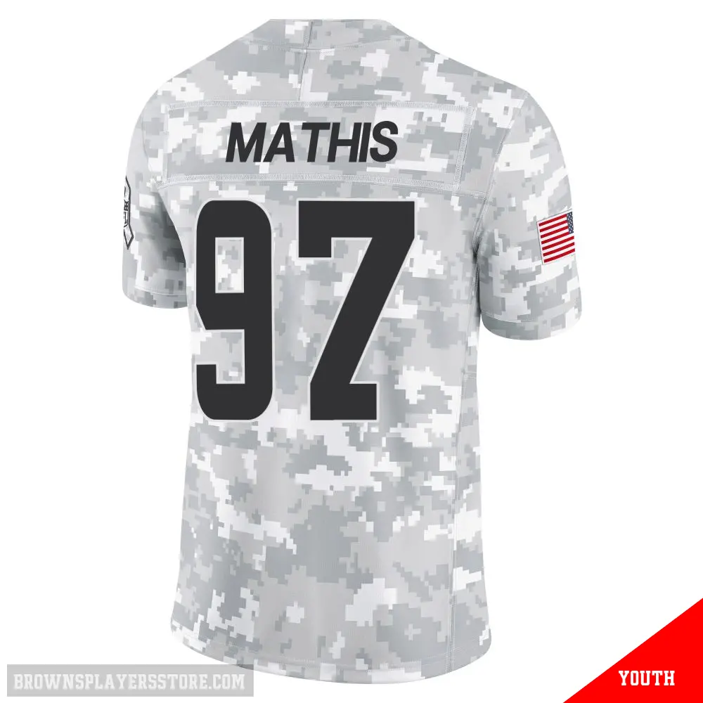 Display your Browns spirit year-round with this #97 Youth Ochaun Mathis Arctic Camo Limited Cleveland Browns 2024 Salute to Service Jersey. Whether you're in the crowd or lounging at home, it's the ideal way to showcase your love for Browns.