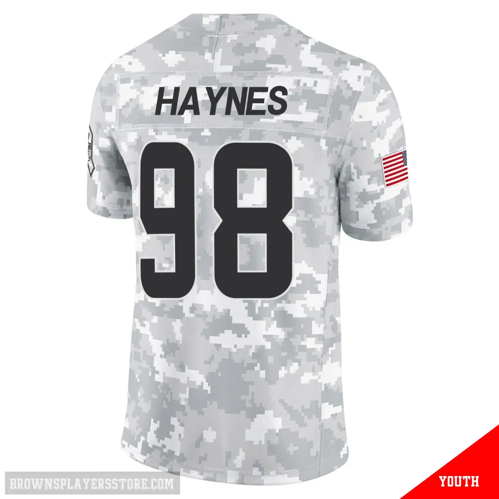 Display your Browns spirit year-round with this #98 Youth Marcus Haynes Arctic Camo Limited Cleveland Browns 2024 Salute to Service Jersey. Whether you're in the crowd or lounging at home, it's the ideal way to showcase your love for Browns.