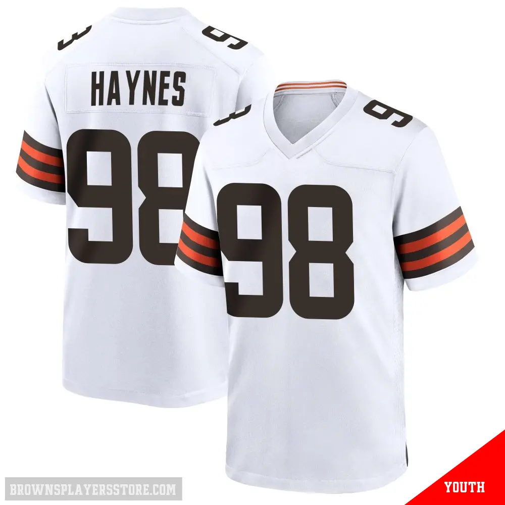#98 Youth Marcus Haynes White Game Cleveland Browns Jersey