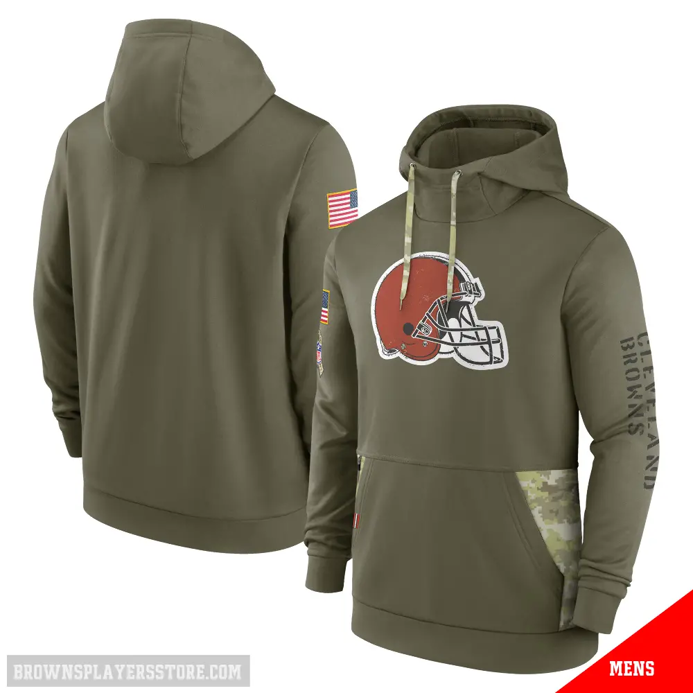 Men's Olive Cleveland Browns 2022 Salute to Service Therma Performance Pullover Hoodie