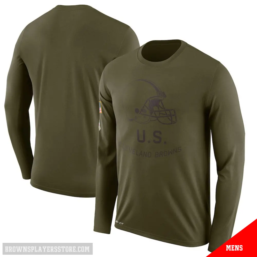 Display your Browns spirit year-round with this Men's Olive Legend Cleveland Browns 2018 Salute to Service Sideline Performance Long Sleeve T-Shirt. Whether you're in the crowd or lounging at home, it's the ideal way to showcase your love for Browns.