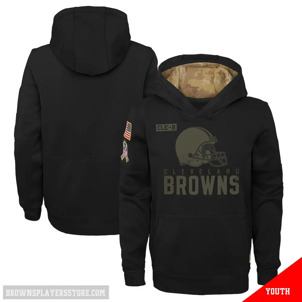 Youth Black Cleveland Browns 2020 Salute to Service Pullover Performance Hoodie