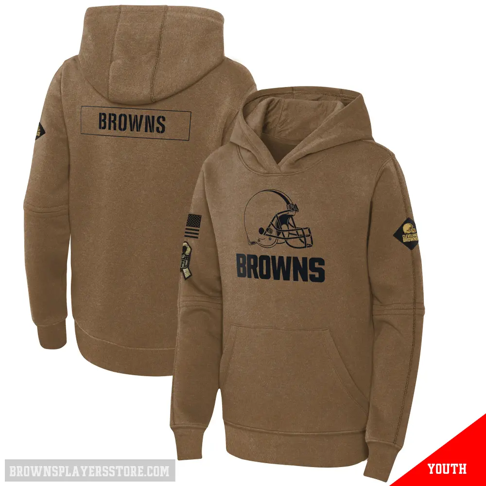 Youth Brown Cleveland Browns 2023 Salute to Service Club Fleece Pullover Hoodie