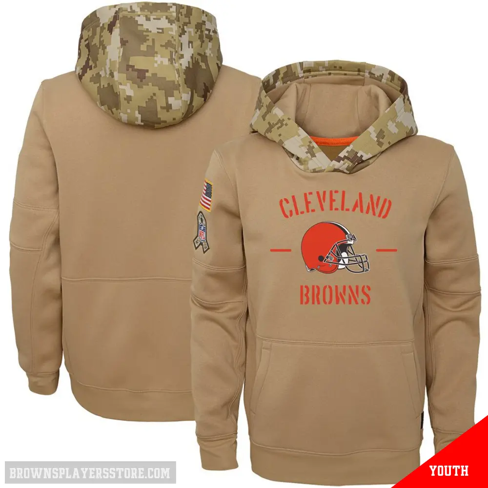 Youth Cleveland Browns Khaki 2019 Salute to Service Therma Pullover Hoodie